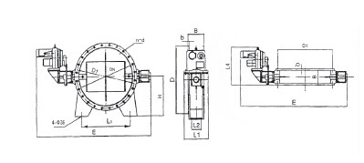 | DN | D | D1 | B | b | n—d | E | H | L1 | L2 | L3 | L4 | 電動(dòng)執(zhí)行器 | 電動(dòng)功率 | 重量(kg) | |